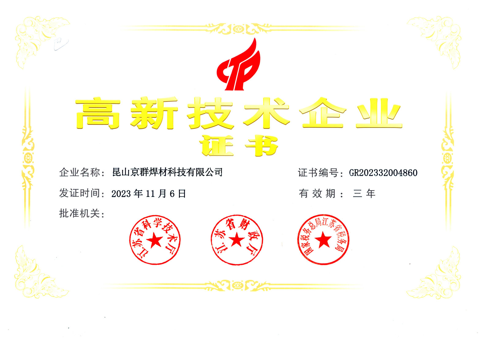 High Tech Enterprise Certificate